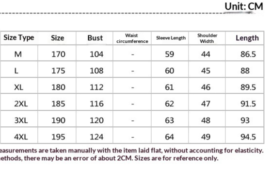 Size: 170, 175, 180, 185, 190, 195